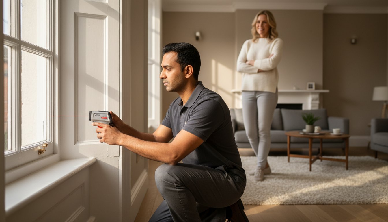 A standard household tape measure can bow or sag over wide spans, leading to inaccuracies that ruin the look of a premium window dressing. Our experts use calibrated laser measures that provide accuracy within 1mm, which is vital for high-ceiling rooms or wide-span bifold doors. During the measuring service for blinds and shutters, we do more than just record numbers. We check wall stability and identify lintel types, such as steel or concrete, to ensure the fixings will hold securely. Trade-grade tools ensure an accuracy that household tapes cannot match, preventing costly damage to your plasterwork during the eventual installation.